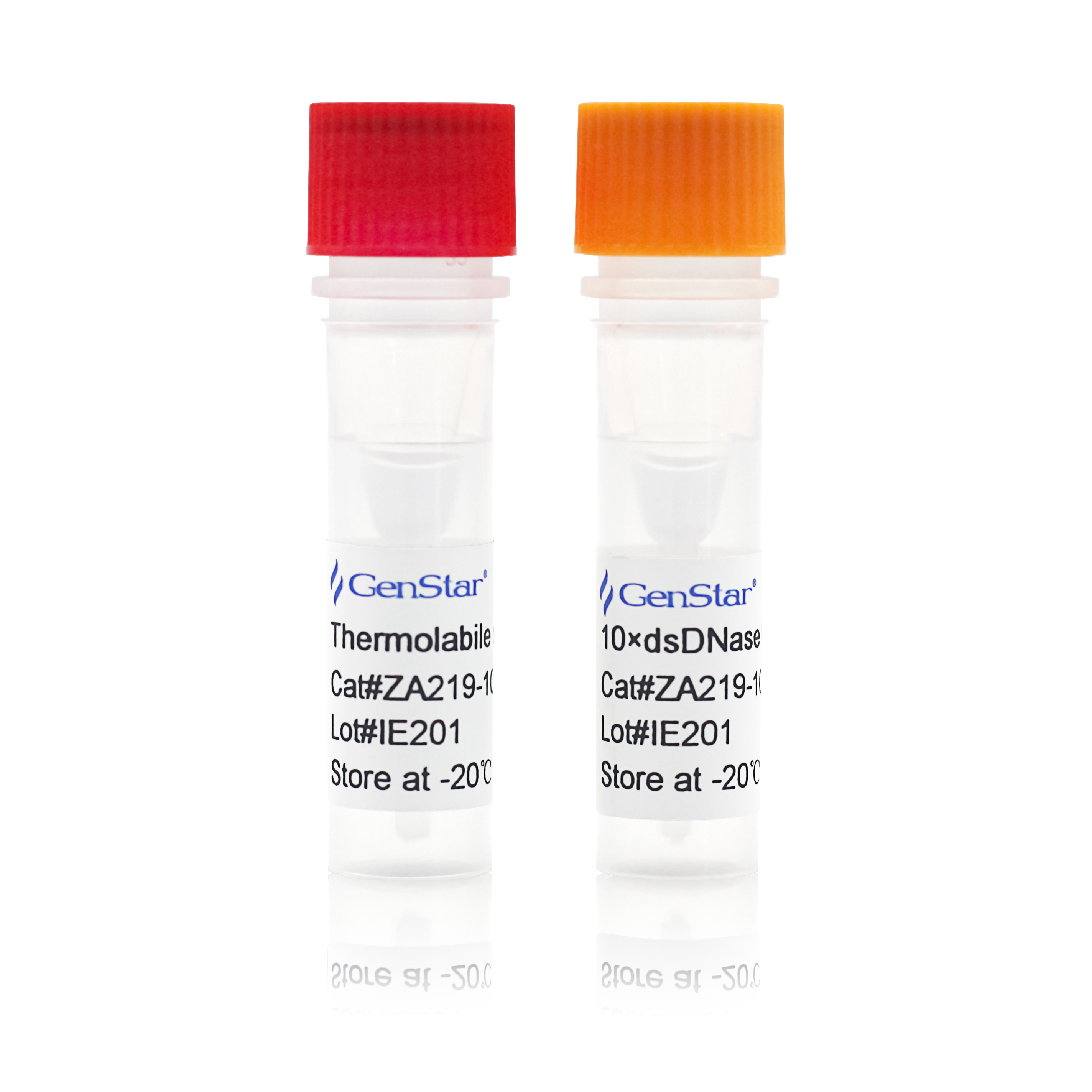 Thermolabile dsDNase 是一種熱敏感性的核酸內(nèi)切酶,能夠裂解 DNA 中的磷酸二酯鍵,生成帶有 5'- 磷酸和 3'- 羥基末端的寡核苷酸。本產(chǎn)品可特異性消化雙鏈 DNA(double-stranded DNA,dsDNA),不會對單鏈 DNA、引物、探針和 RNA 造成影響。同時(shí),本產(chǎn)品具有熱敏感特性,可在 55℃ 條件下快速失活。與傳統(tǒng)的使用 DNase I 去除基因組 DNA 污染的方法相比,無需額外加入 EDTA 等保護(hù)試劑,可有效減少對 RNA 的損傷。Thermolabile dsDNase 適用于反轉(zhuǎn)錄實(shí)驗(yàn)前快速去除 RNA 樣本中的基因組 DNA 污染,節(jié)省實(shí)驗(yàn)時(shí)間,保證 RNA 水平定量的準(zhǔn)確性。