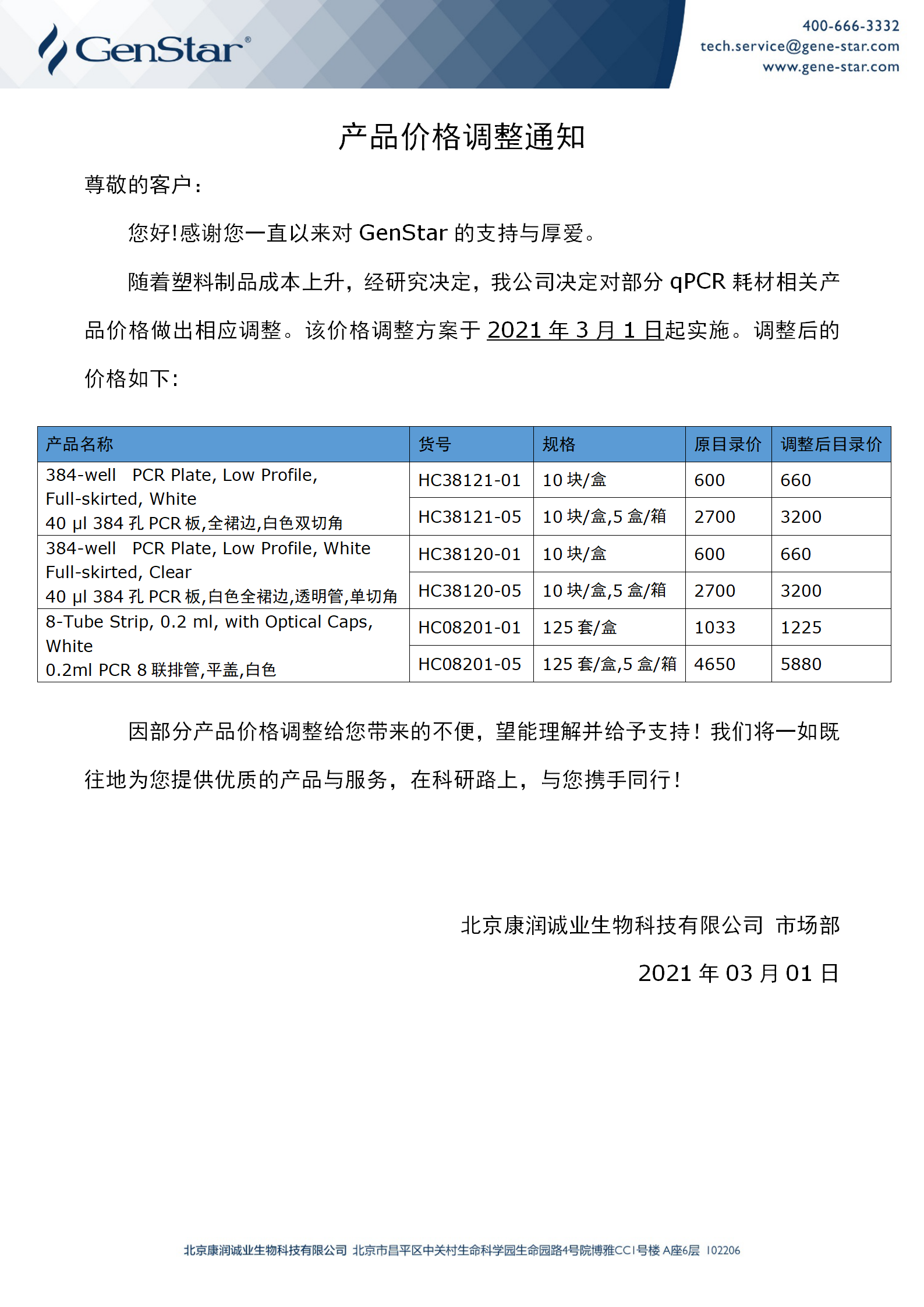 qPCR耗材相關(guān)產(chǎn)品價格調(diào)整