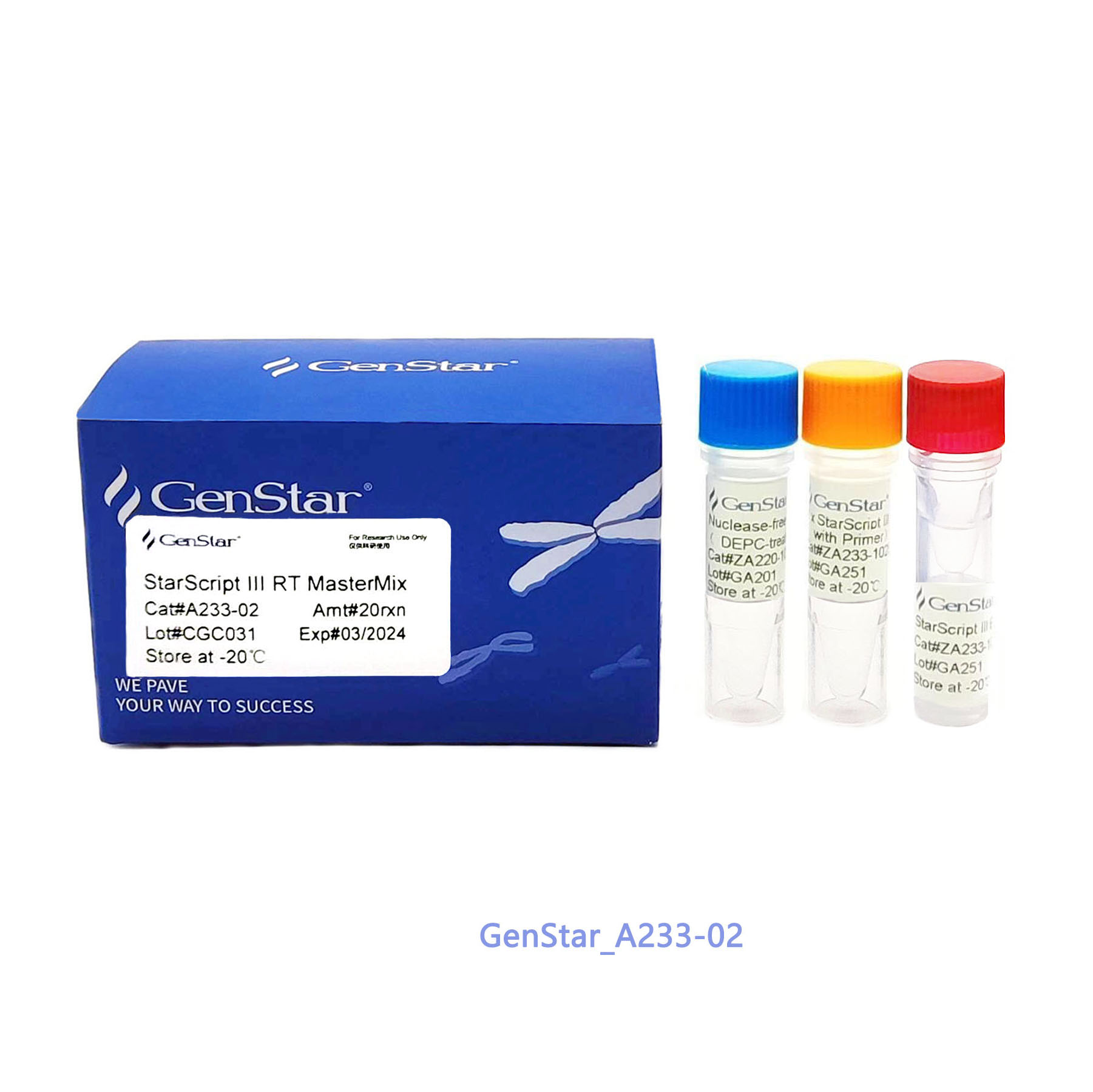 本產(chǎn)品是基于 StarScript III 反轉(zhuǎn)錄酶開發(fā)的 cDNA 第一鏈合成的預(yù)混試劑。StarScript III 反轉(zhuǎn)錄酶比 StarScript II 反轉(zhuǎn)錄酶具有更高的熱穩(wěn)定性,對(duì)于復(fù)雜二級(jí)結(jié)構(gòu)和高 GC 含量靶標(biāo),可將逆轉(zhuǎn)錄溫度提高至 55-60℃,克服 RNA 復(fù)雜二級(jí)結(jié)構(gòu)對(duì) cDNA 合成的抑制,有效合成高質(zhì)量的 cDNA;同時(shí),StarScript III 反轉(zhuǎn)錄酶 cDNA 合成能力更高,非常適合少量模板以及低拷貝基因的逆轉(zhuǎn)錄。本產(chǎn)品提供便捷的預(yù)混試劑,2×StarScript III Buffer(with Primer)包含優(yōu)化的緩沖體系、dNTPs,并預(yù)混了 Random Primer 和 Oligo18 (dT);StarScript III RT Mix 包含比例優(yōu)化的 StarScript III 反轉(zhuǎn)錄酶、RNase inhibitor,可以從極低量的總 RNA 或 poly(A) mRNA 合成第一鏈 cDNA,合成的單鏈 cDNA 產(chǎn)物可直接用來進(jìn)行后續(xù) PCR 或者 qPCR 反應(yīng)。