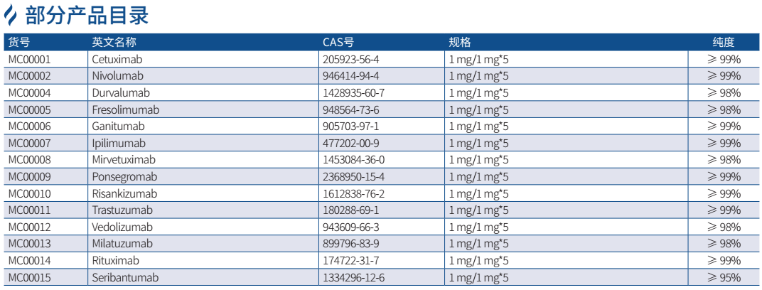 抗體抑制劑是一類能夠通過與特定抗原結(jié)合并阻斷其生物活性,從而抑制特定分子或細胞過程的抗體??贵w抑制劑具有與原始治療性抗體相同的活性生物成分,可作為陽性對照用于藥物效果評價等相關科學研究,同時也可以輔佐驗證靶點蛋白的功能活性。GenStar 現(xiàn)提供數(shù)百種抗體抑制劑助力科研工作者,包括鼠源抗體、嵌合抗體、人源抗體、雙特異性抗體等,涉及一些熱門靶蛋白 PD-L1、PD-1、VEGF、EGFR、HER2、TNF-α、CD20、Claudin18.2、CTLA4、CD3、CD47、4-1BB 等。
