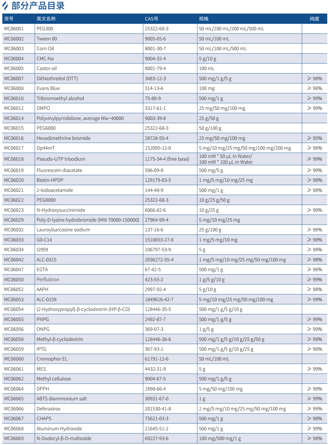 本界面只顯示部分產(chǎn)品信息,若想獲取更多小分子系列產(chǎn)品信息,請(qǐng)聯(lián)系我們銷(xiāo)售或致電技術(shù)支持熱線:400-666-3332
